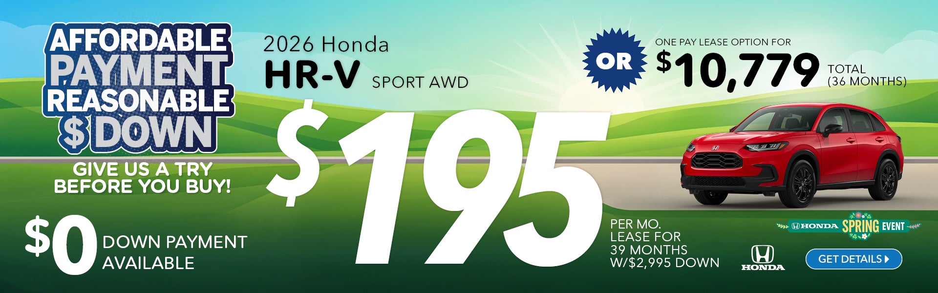 Model shown for illustration purposes only. Offer valid on in-stock or in-transit units only. Offers cannot be combined. Available on approved credit through FourLeaf FCU. Not all buyers will qualify. Lease payments do not include taxes and fees. Credit approval subject to primary lender. Total due at signing includes $2,995 cash down or trade equivalent, $995 bank fee, taxes, fees, and first month’s payment. $0 down payment lease option available; taxes, fees, and first month’s payment due at signing. One Pay Lease option available for $10,779 total payment for 36 months, plus taxes and fees. Lease based on 39 months with 10,000 miles per year and $0.25 charge per additional mile. Customer responsible for excessive wear and tear. All current incentives assigned to dealer. Price(s) include(s) all costs to be paid by a consumer, including $1,450 destination and handling fees, licensing costs, registration fees, and taxes. Restrictions apply. See dealer for complete details. Offer expires 04/30/2026.